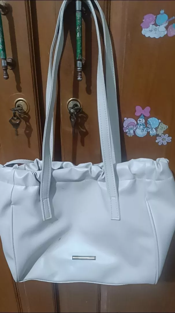 Tas ini terbuat dari bahan sintetis berkualitas tinggi dan dilengkapi dengan tali gagang ganda sehingga mudah dibawa ke mana-mana.